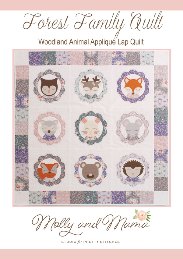 Nine woodland friends share their smiling faces framed in sweet scallops in this straightforward appliqué lap quilt. Featuring a simple border, it’s an ideal quilt for showcasing a fabric collection, or using your favourite pre-cut bundle. The cover version is sewn in Tilda Old Rose.