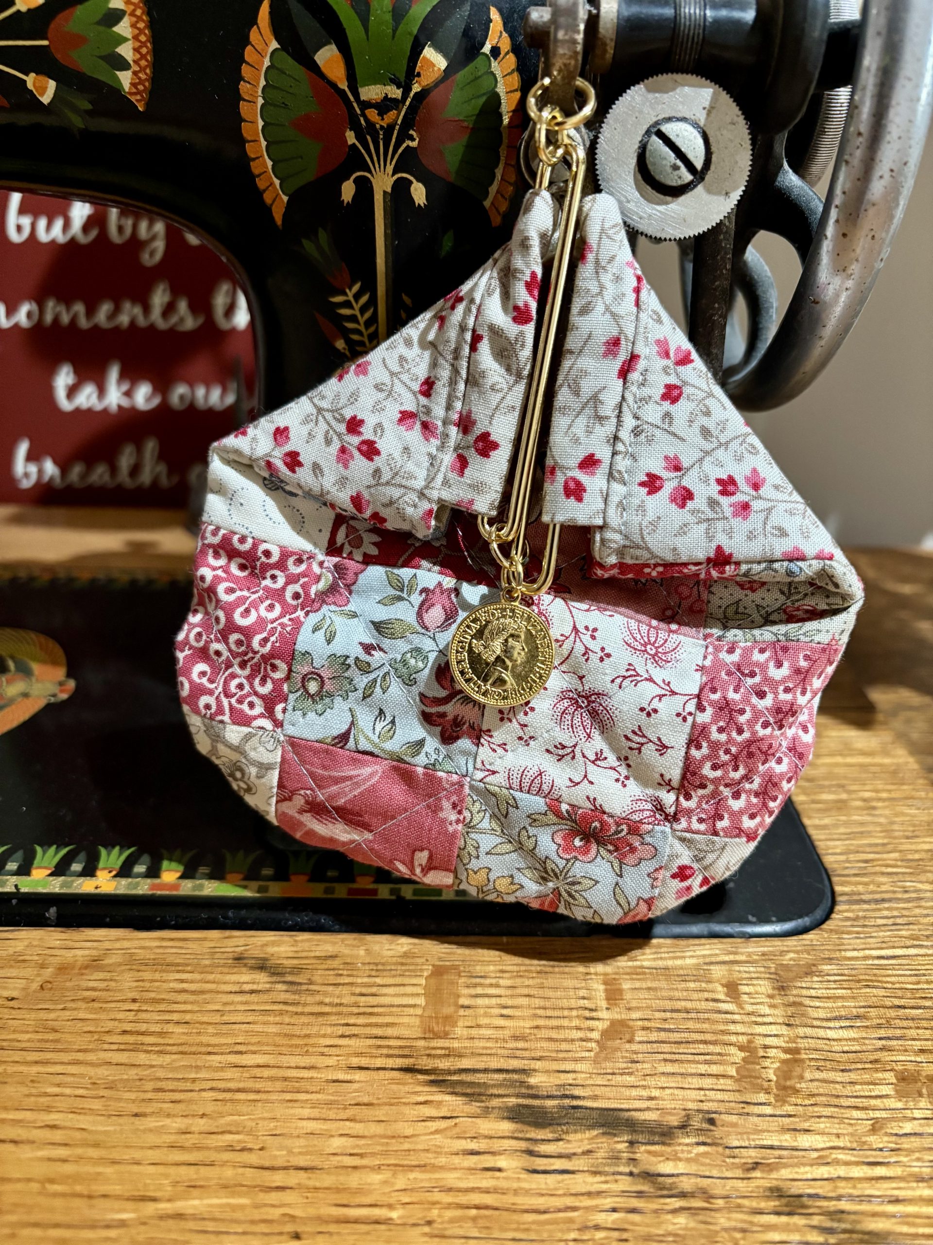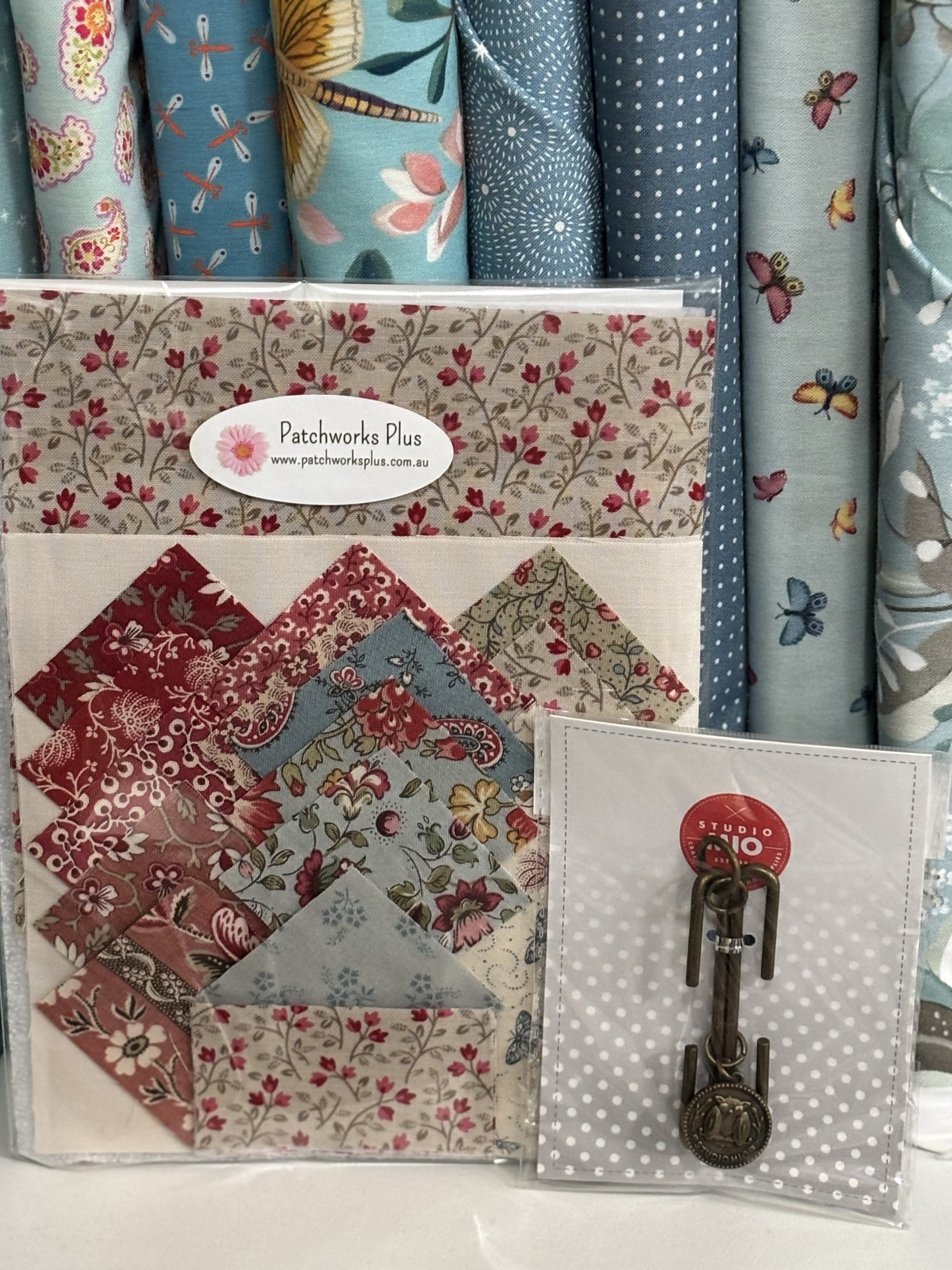 Kit includes all fabric, antique brass slide clasp, pellon and pattern to make your purse.