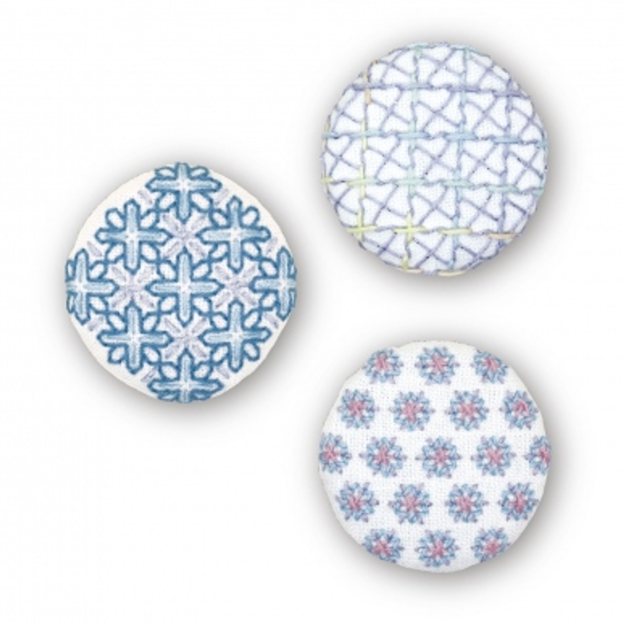 This is a lovely sashiko brooch kit that is stitched with 3 different patterns – each kit includes everything you need to make three different brooches. The tailoring of the brooch is easy, and each one can be completed in an average of about 2.5 hours from sashiko to tailoring. Use as a brooch or a decoration for a bag.
